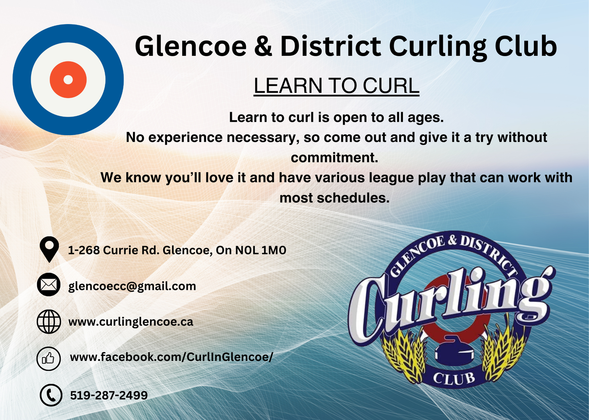 The Glencoe & District Curling Club is committed to providing inclusive curling opportunities for residents of all ages, promoting physical, mental, and social well-being throughout the curling season.